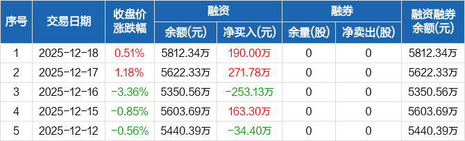 罗普特:融资净买入190万元,融资余额5812.34万元(12-18)