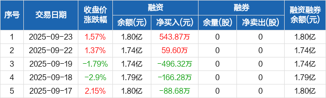 安凯微:融资净买入543.87万元,融资余额1.8亿元(09-23)