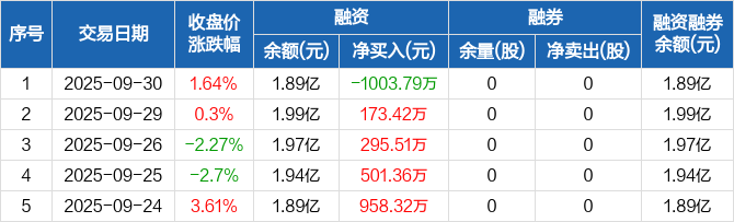 安凯微:融资净偿还1003.79万元,融资余额1.89亿元(09-30)