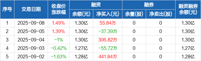 双元科技:融资余额1.3亿元,创历史新高(09-08)