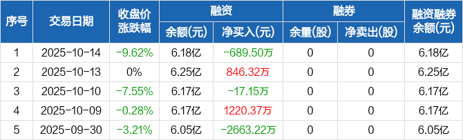 精智达:融资净偿还689.5万元,融资余额6.18亿元(10-14)