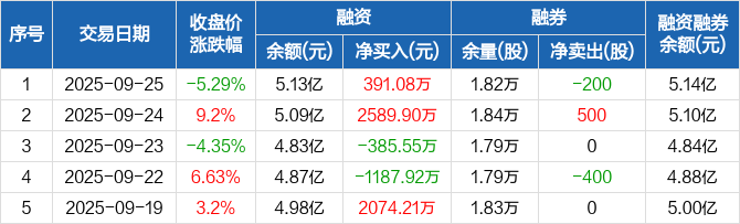莱斯信息:融资余额5.13亿元,创历史新高(09-25)