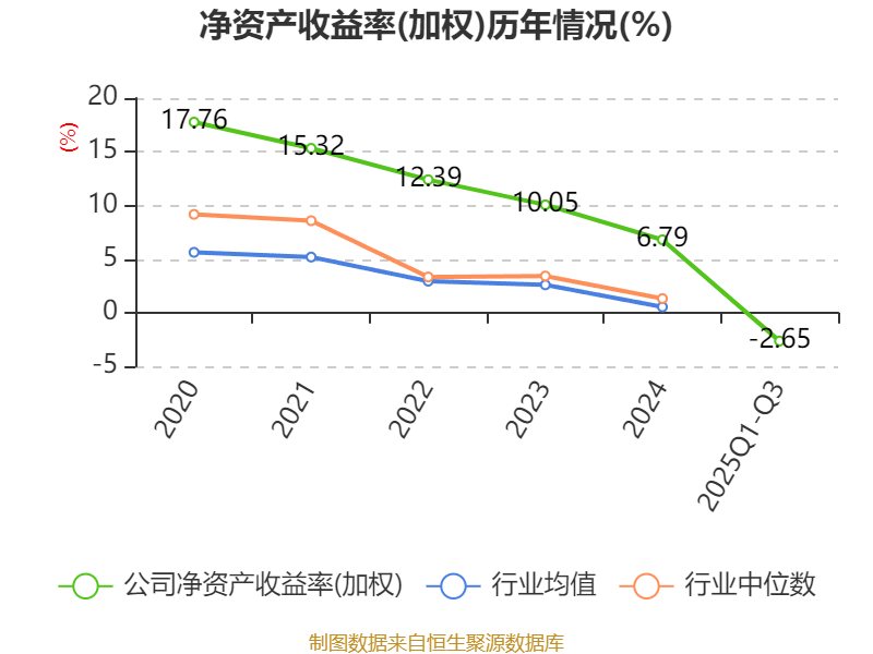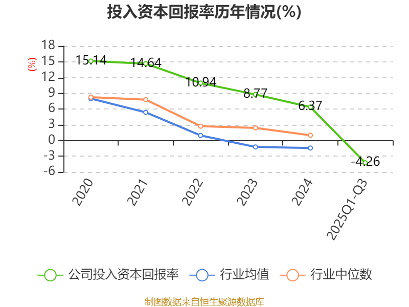 盈利能力方面, 2025年前三季度公司加权平均净资产收益率为-2.65%,同比下降3.49个百分点。公司2025年前三季度投入资本回报率为-4.26%,较上年同期下降3.92个百分点。