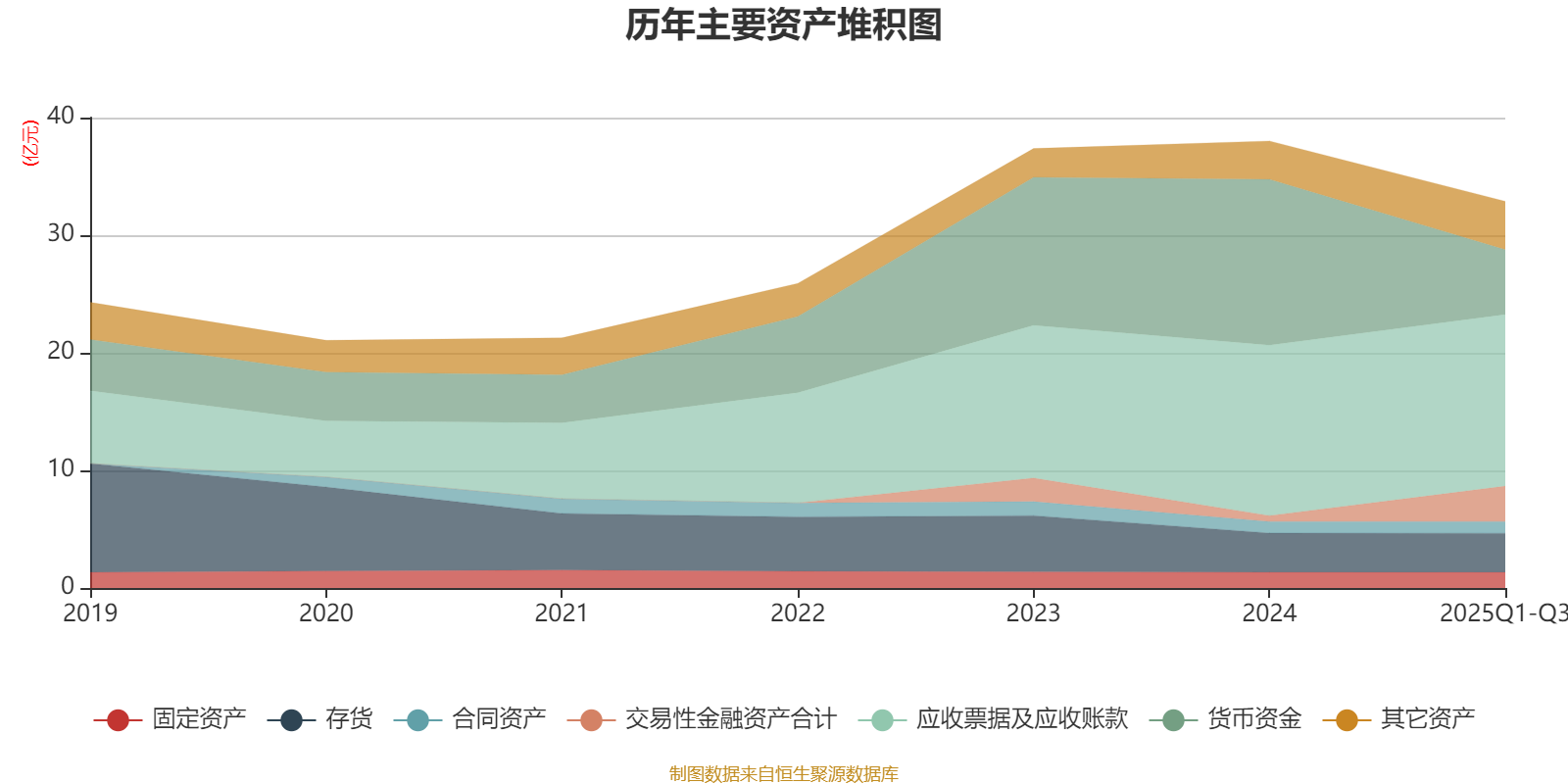 资产重大变化方面,截至2025年三季度末,公司货币资金较上年末减少60.98%,占公司总资产比重下降20.37个百分点;交易性金融资产合计较上年末增加498.87%,占公司总资产比重上升7.82个百分点;应收票据及应收账款较上年末增加0.74%,占公司总资产比重上升6.27个百分点;预付款项较上年末增加95.14%,占公司总资产比重上升2.12个百分点。