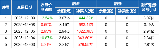 中邮科技:融资净偿还444.32万元,融资余额3.07亿元(12-09)
