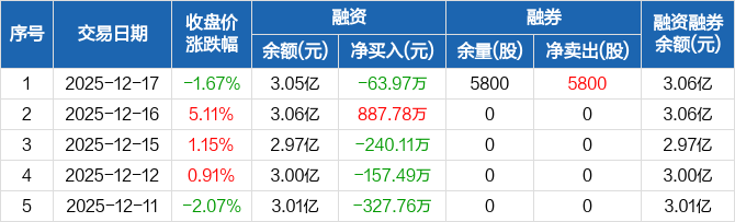 中邮科技:融资净偿还63.97万元,融资余额3.05亿元(12-17)