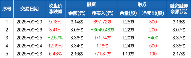 京仪装备:融资净买入897.72万元,融资余额3.14亿元(09-29)