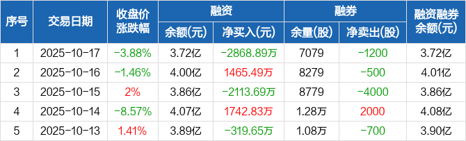 京仪装备:融资净偿还2868.89万元,融资余额3.72亿元(10-17)