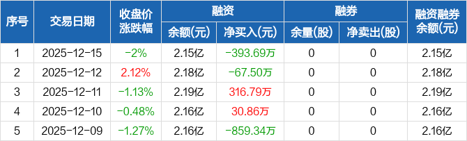 康希通信:融资净偿还393.69万元,融资余额2.15亿元(12-15)