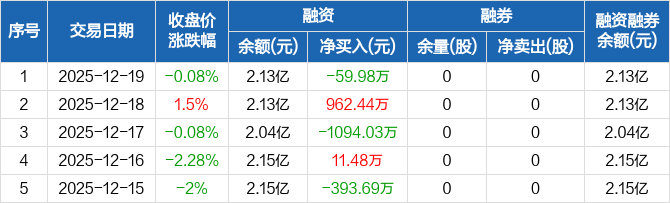 康希通信:融资净偿还59.98万元,融资余额2.13亿元(12-19)