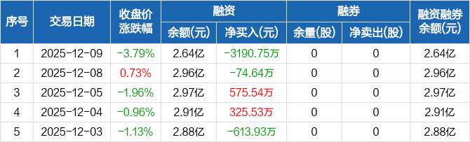 浩欧博:融资净偿还3190.75万元,融资余额2.64亿元(12-09)