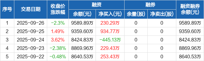 浩辰软件:融资净买入230.29万元,融资余额9589.89万元(09-26)