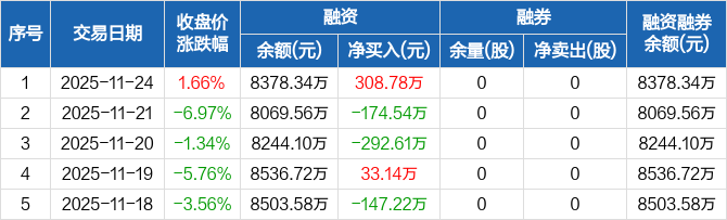 元琛科技:融资净买入308.78万元,融资余额8378.34万元(11-24)