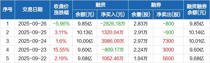 电气风电:融资净偿还2826.18万元,融资余额9.85亿元(09-26)