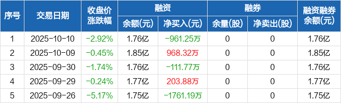 富信科技:融资净偿还961.25万元,融资余额1.76亿元(10-10)
