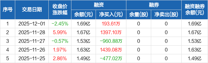 富信科技:融资净买入193.61万元,融资余额1.69亿元(12-01)