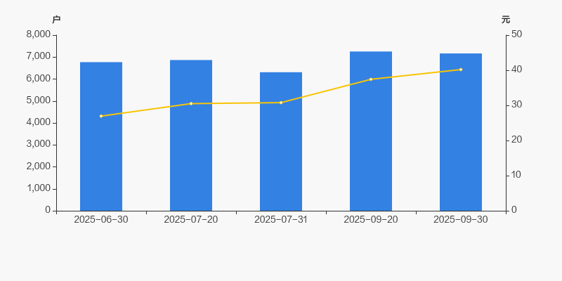2025年6月30日至今,公司股东户数有所增长,区间涨幅为5.85%。2025年6月30日至2025年9月30日区间股价上涨49.17%。
