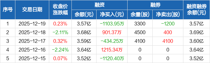 新风光:融资净偿还1103.95万元,融资余额3.57亿元(12-19)