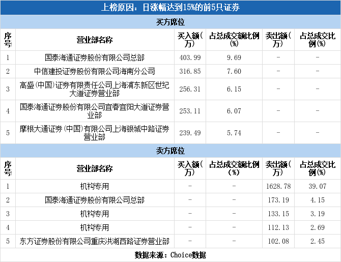 多主力现身龙虎榜,菱电电控上涨18.61%(11-24)