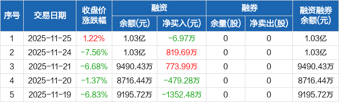 聚石化学:融资净偿还6.97万元,融资余额1.03亿元(11-25)