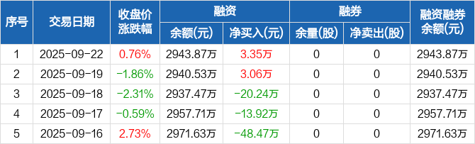 碧兴物联:融资净买入3.35万元,融资余额2943.87万元(09-22)