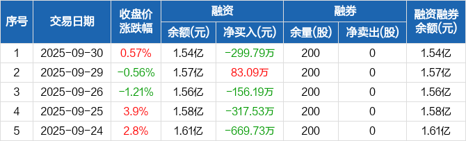 海泰新光:融资净偿还299.79万元,融资余额1.54亿元(09-30)