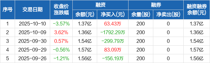 海泰新光:融资净买入63.43万元,融资余额1.37亿元(10-10)