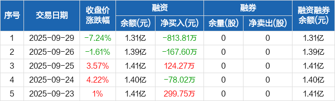 通源环境:融资净偿还813.81万元,融资余额1.31亿元(09-29)