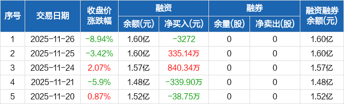 通源环境:融资净偿还3272元,融资余额1.6亿元(11-26)