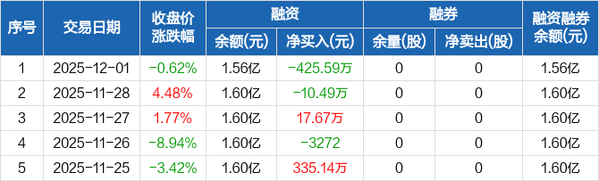 通源环境:融资净偿还425.59万元,融资余额1.56亿元(12-01)