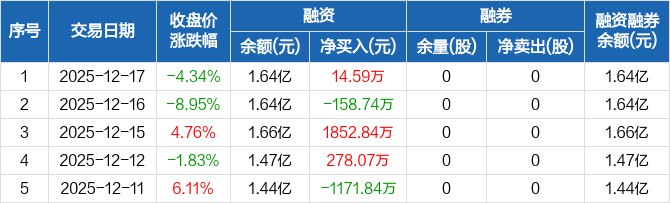 通源环境:融资净买入14.59万元,融资余额1.64亿元(12-17)