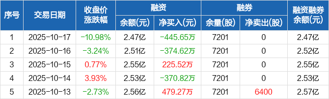 海优新材:融资净偿还445.65万元,融资余额2.47亿元(10-17)