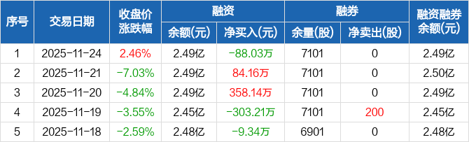 海优新材:融资净偿还88.03万元,融资余额2.49亿元(11-24)