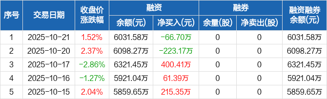 科汇股份:融资净偿还66.7万元,融资余额6031.58万元(10-21)
