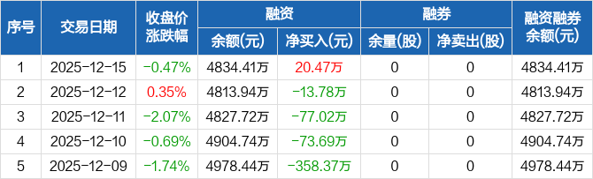 科汇股份:融资净买入20.47万元,融资余额4834.41万元(12-15)