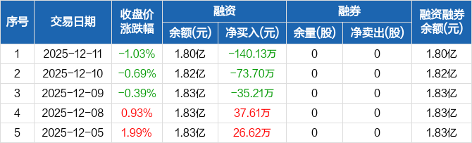 莱尔科技:连续3日融资净偿还累计249.04万元(12-11)