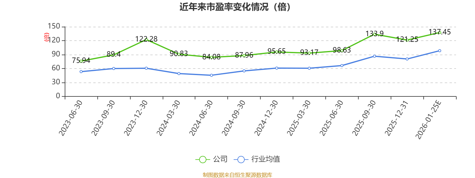 中证智能财讯莱尔科技(688683)1月25日晚间披露2025年业绩快报,公司实现营业收入9.62亿元,同比增长82.97%;归母净利润4246.41万元,同比增长13.67%;扣非净利润3878.06万元,同比增长28.24%;基本每股收益0.28元,加权平均净资产收益率为4.16%。以1月23日收盘价计算,莱尔科技目前市盈率(TTM)约为137.45倍,市净率(LF)约4.95倍,市销率(TTM)约7.2倍。