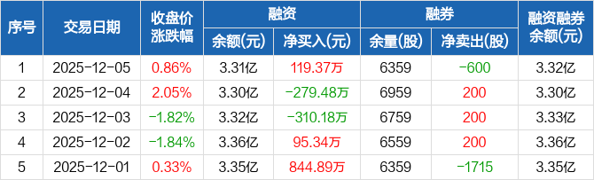奥普特:融资净买入119.37万元,融资余额3.31亿元(12-05)