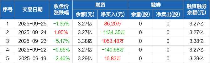 凯因科技:融资净买入86.2万元,融资余额3.27亿元(09-25)