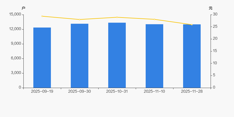 2025年9月19日至今,公司股东户数有所增长,区间涨幅为5.27%。2025年9月19日至2025年11月28日区间股价下降11.82%。