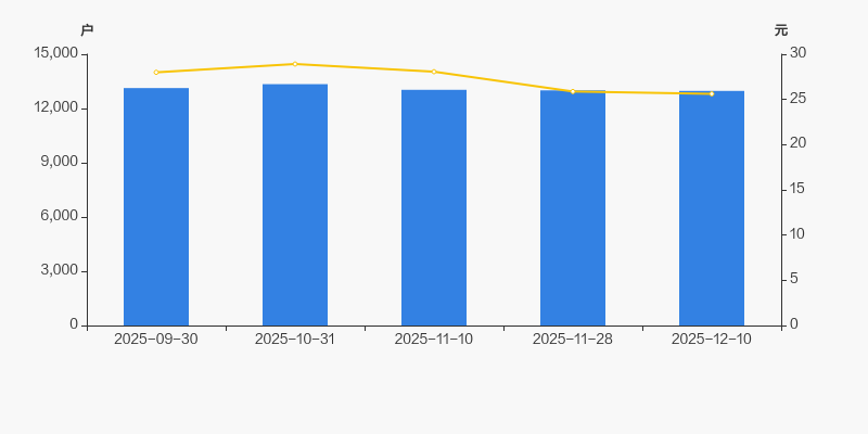 自2025年10月31日以来,公司股东户数连续3期下降,截至目前减幅为2.80%。2025年10月31日至2025年12月10日区间股价下降11.41%。