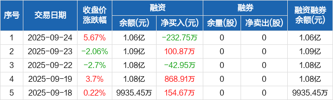 银河微电:融资净偿还232.75万元,融资余额1.06亿元(09-24)