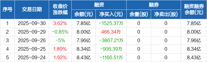 达梦数据:融资净偿还1525.37万元,融资余额7.85亿元(09-30)