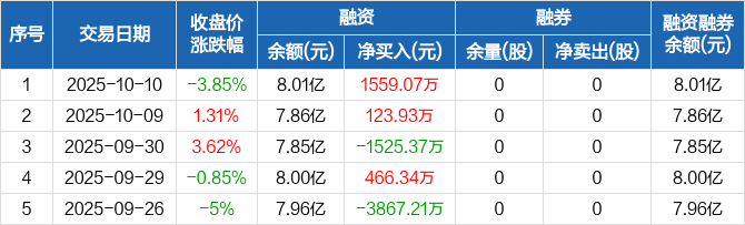 达梦数据:融资净买入1559.07万元,融资余额8.01亿元(10-10)