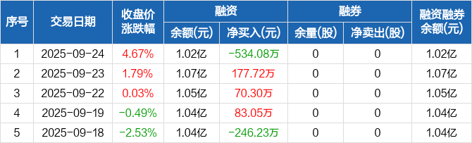 锴威特:融资净偿还534.08万元,融资余额1.02亿元(09-24)