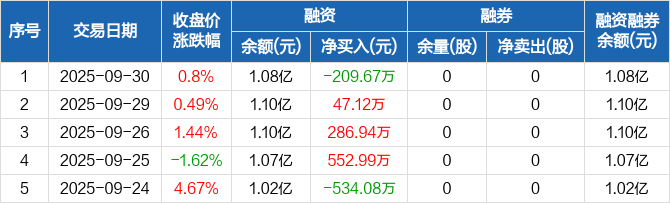 锴威特:融资净偿还209.67万元,融资余额1.08亿元(09-30)