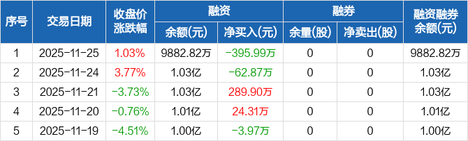 中创股份:融资净偿还395.99万元,融资余额9882.82万元(11-25)