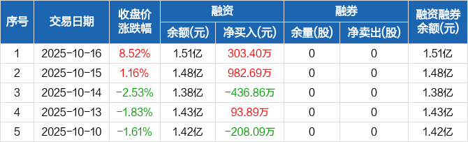 纽威数控:融资净买入303.4万元,融资余额1.51亿元(10-16)