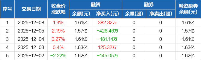 纽威数控:融资净买入382.32万元,融资余额1.61亿元(12-08)