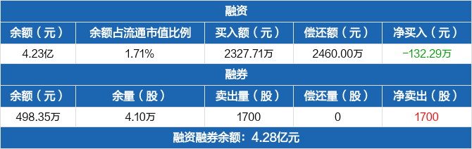 盛科通信:融资净偿还132.29万元,融资余额4.23亿元(11-19)